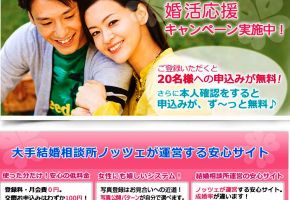大手結婚相談所のノッツェ運営だから安心! いまなら、会員(プロフィール)登録で20名様への申し込み無料になる婚活応援キャンペーン実施中です!