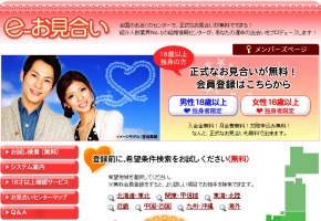 紹介人数業界No1! 大手結婚情報サービスのノッツェの「e-お見合い」というサービスです。無料で会員登録ができ、全国のお相手を検索できます。